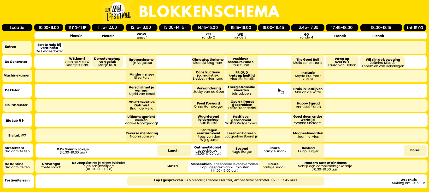 Dit festival is mede mogelijk gemaakt door onze WELdoeners: On the Spot, Drives@School, De Liefdesdokter en de Werkgeluk Academy.